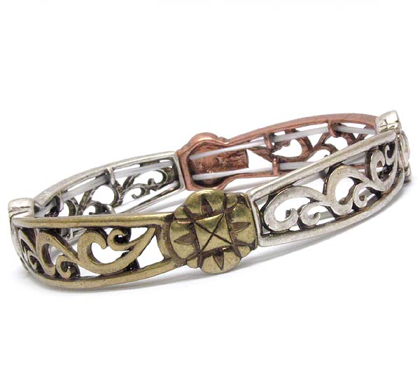WHOLESALE METAL FILIGREE DESIGNER PATTERN STRETCH BRACELET 393021
