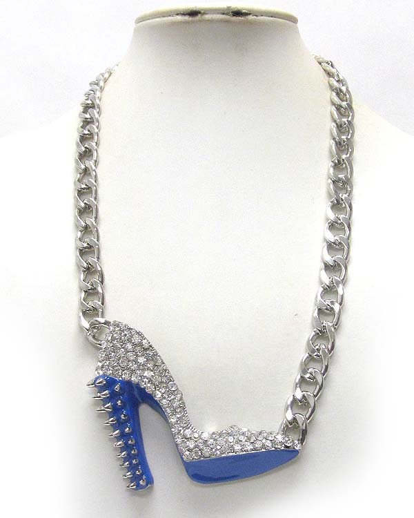 WHOLESALE CRYSTAL STUD LARGE SPIKE HIGH HEEL PENDANT AND THICK CHAIN NECKLACE 393063