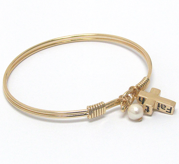 WHOLESALE CROSS AND PEARL CHARM WIRE BANGLE BRACELET 393895