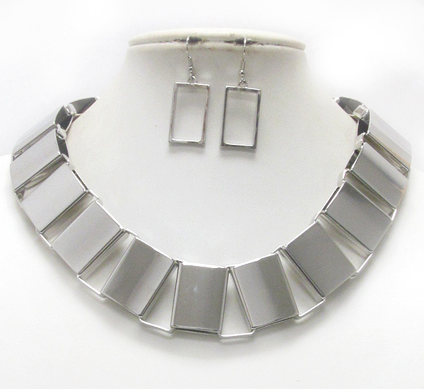 Wide and flat metal tube link necklace earring set