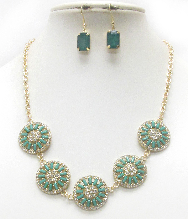WHOLESALE CRYSTAL AND ACRYLIC STONE DECO FLOWER DISK LINK NECKLACE EARRING SET 393932