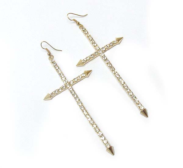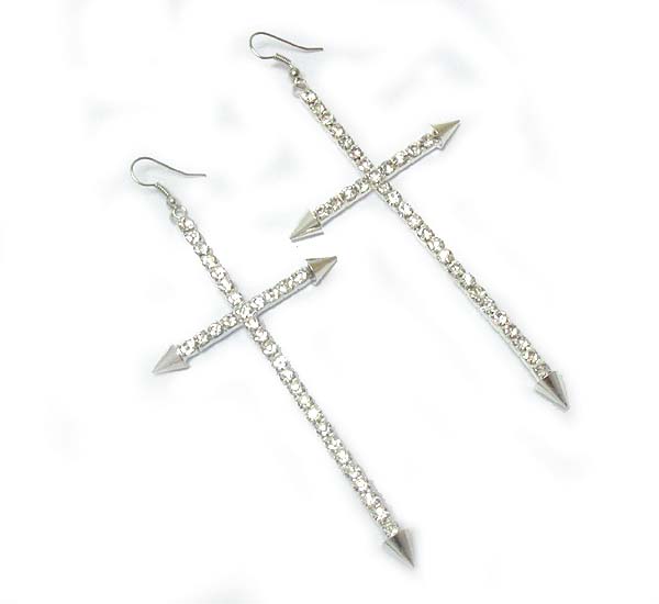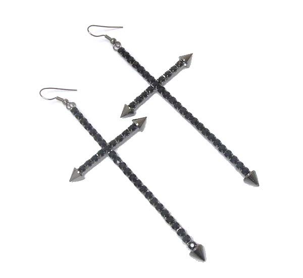 WHOLESALE CRYSTAL DECO SKINNY CROSS EARRING 394132