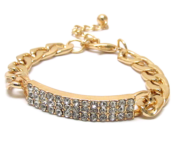 WHOLESALE CRYSTAL PAVED ON CURVED METAL PLATE AND THICK CHAIN BRACELET 394136