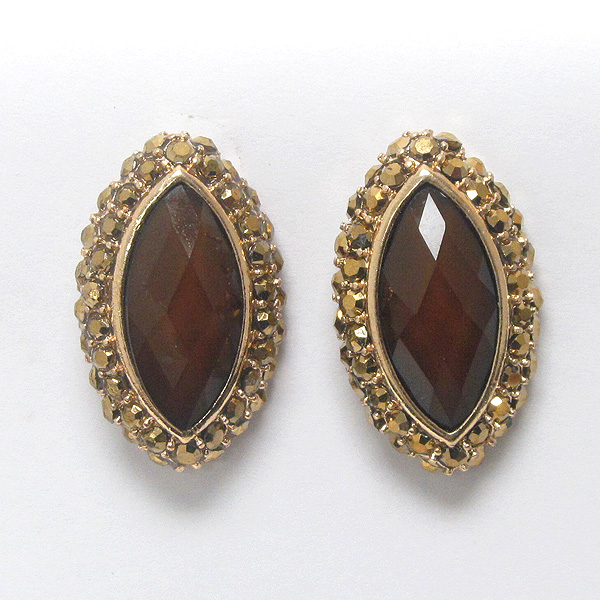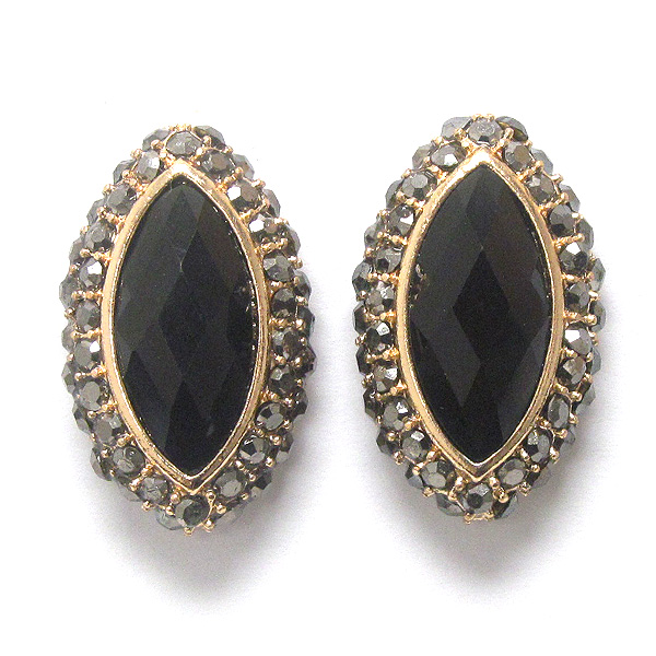 WHOLESALE CRYSTAL AND FACET OVAL STONE BUTTON EARRING -PIERCE 394328