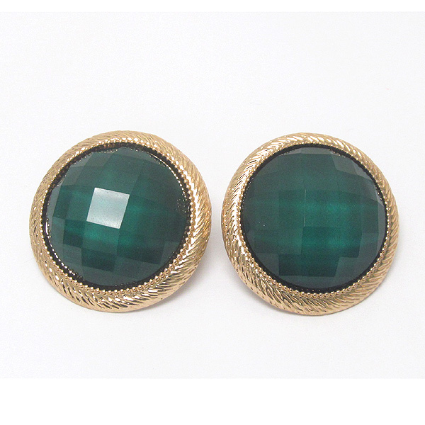 Facet stone round button earring - pierce