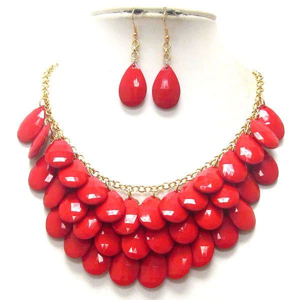 WHOLESALE MULTI FACET ACRYLIC TEARDROP DANGLE BIB STYLE NECKLACE EARRING SET 394441
