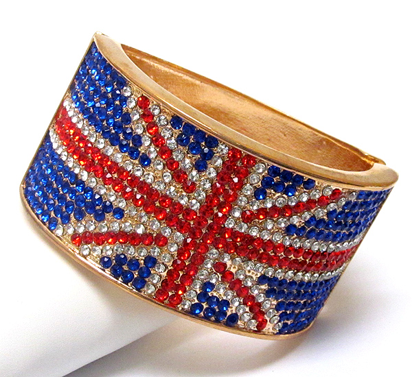 WHOLESALE CRYSTAL PAVE BRITISH FLAG HINGE BANGLE - UNION JACK 394543