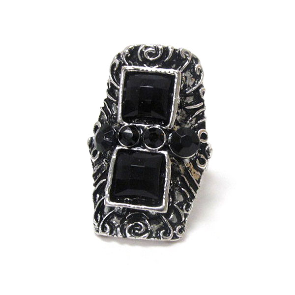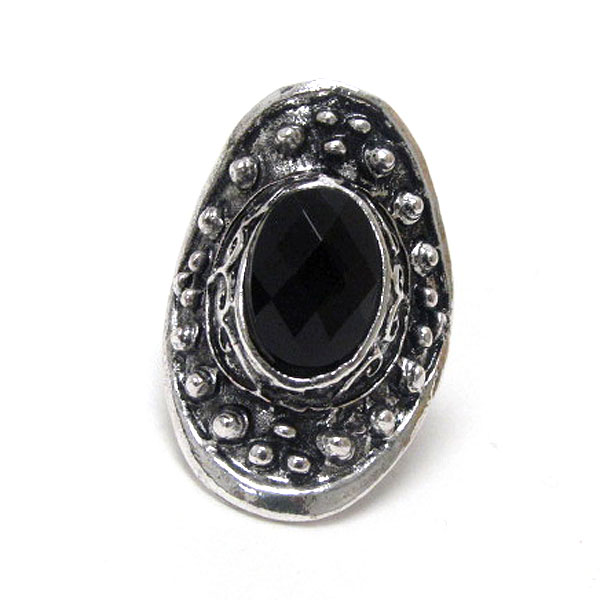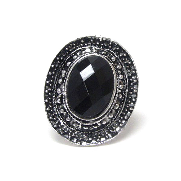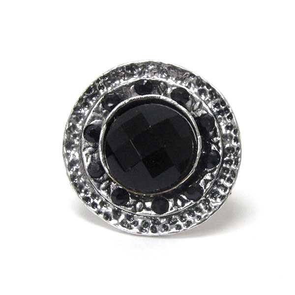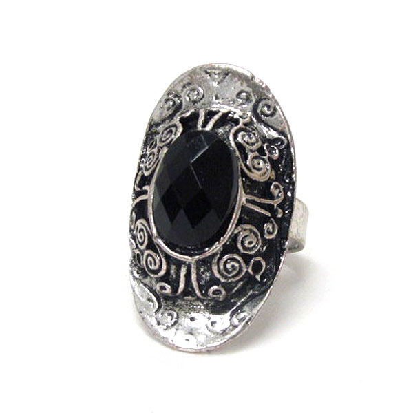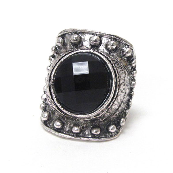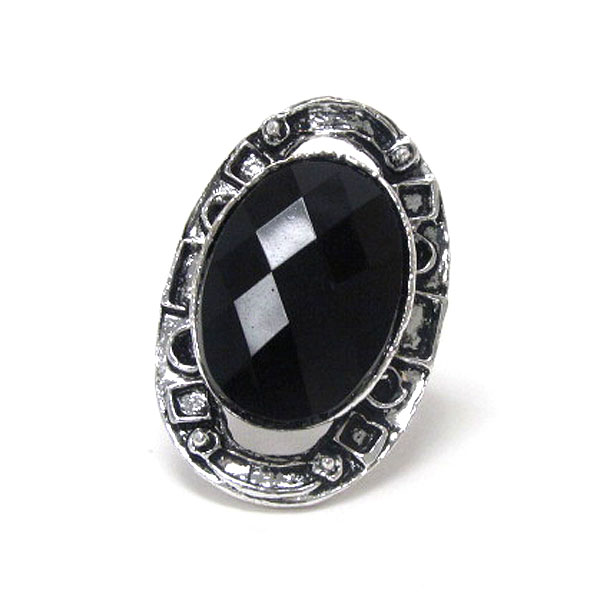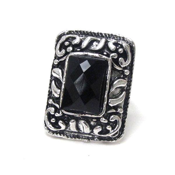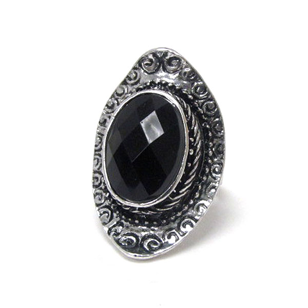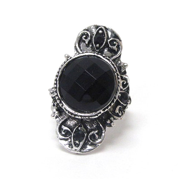 Facet acrylic stone and metal filigree adjustable ring