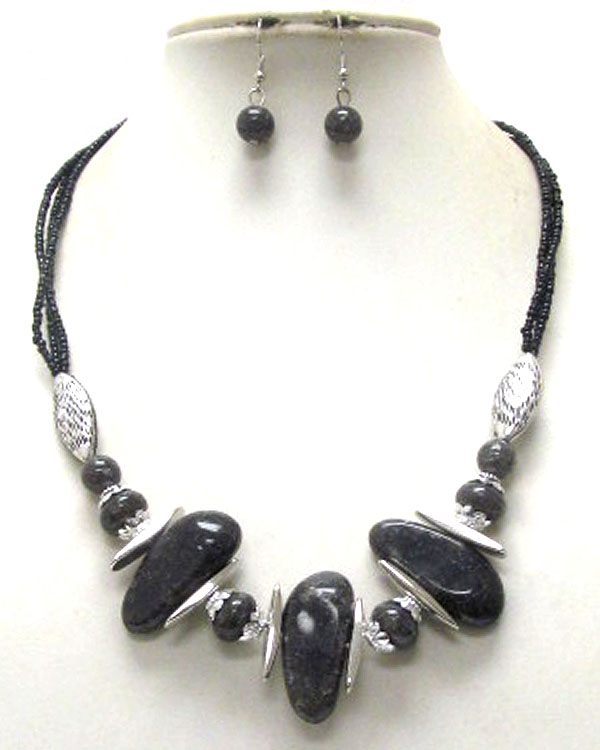 WHOLESALE NATURAL SHAPE STONE AND METAL DECO NECKLACE EARRING SET 394742