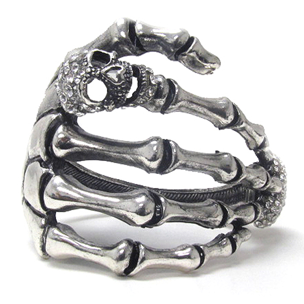 WHOLESALE CRYSTAL SKULL AND HEART SKELETON HINGE BANGLE -HALLOWEEN 394826