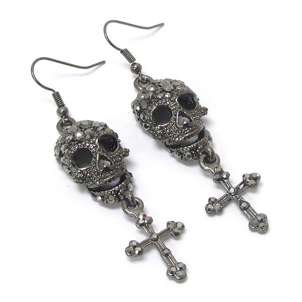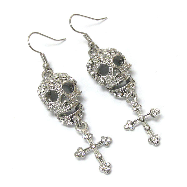 WHOLESALE CRYSTAL SKULL SKELETON AND CROSS DROP EARRING -HALLOWEEN 394829