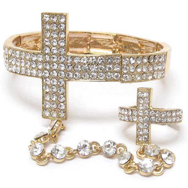 WHOLESALE CRYSTAL CROSS STRETCH BRACELET AND RING SET 394846