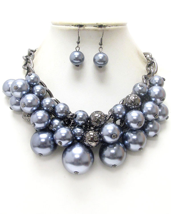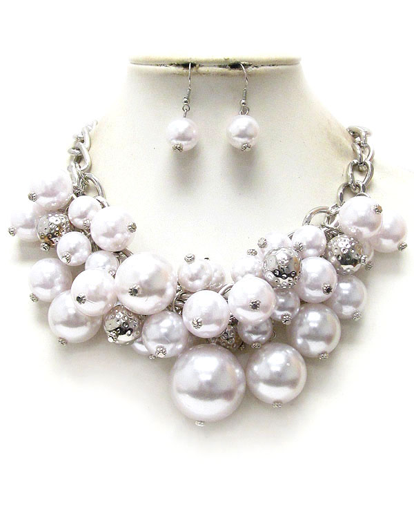 WHOLESALE MULTI PEARL AND METAL BALL MIX DROP NECKLACE EARRING SET 395066
