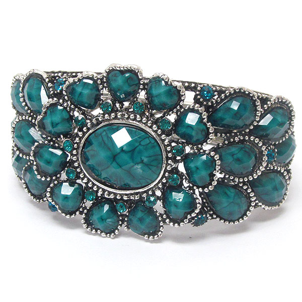 Multi crystal and resin flower deco open bangle vintage bracelet
