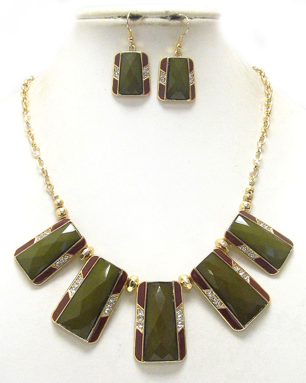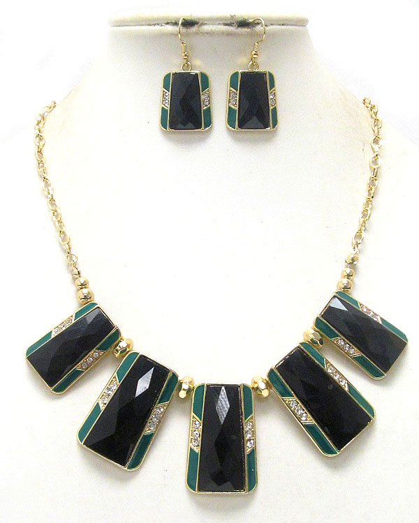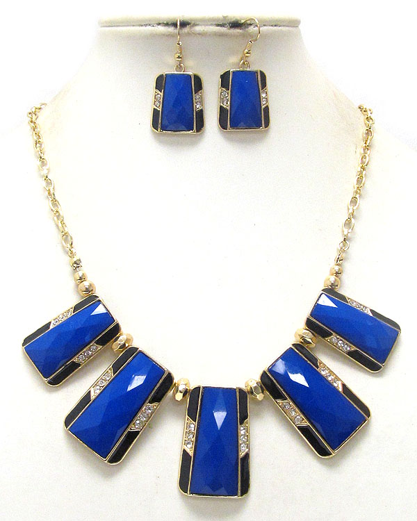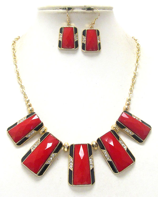 WHOLESALE FACET ACRYLIC STONE AND CRYSTAL DECO COCKTAIL NECKLACE EARRING SET 395146
