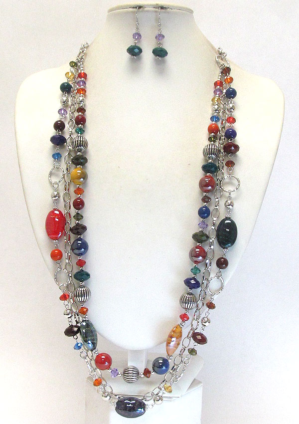WHOLESALE MULTI COLOR GLASS BEAD AND CHAIN LONG NECKLACE EARRING SET 395282