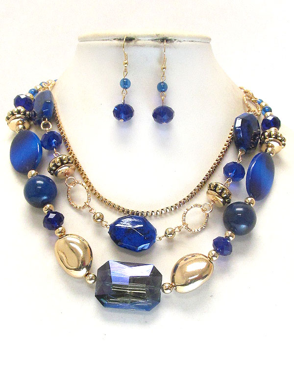 WHOLESALE MULTI FACET GLASS AND ACRYLIC STONE DECO 3 LAYER NECKLACE EARRING SET 395283