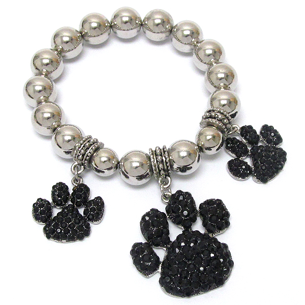 Crystal deco triple paw print carm stretch bracelet