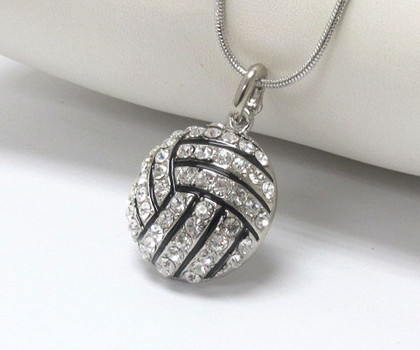 Crystal deco volleyball pendant necklace