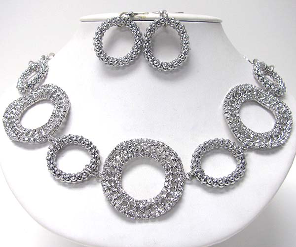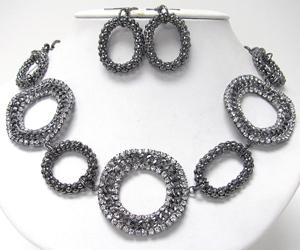 WHOLESALE CRYSTAL AND CHAIN HOOP LINK NECKLACE EARRING SET 395659