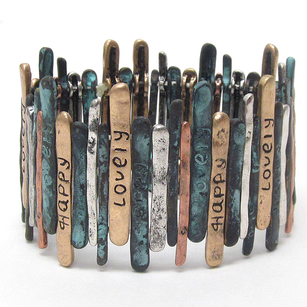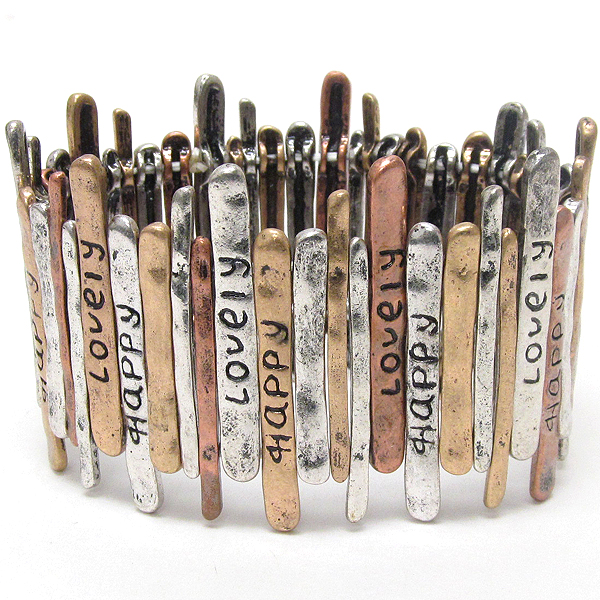 WHOLESALE LOVE AND HAPPY INSPIRATION MESSAGE ON MULTI BAR LINK STRETCH BRACELET 395755