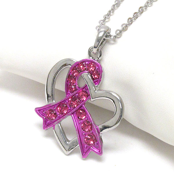 WHOLESALE CRYSTAL PINK RIBBON AND HEART PENDANT NECKLACE - BREAST CANCEL AWARENESS 395826