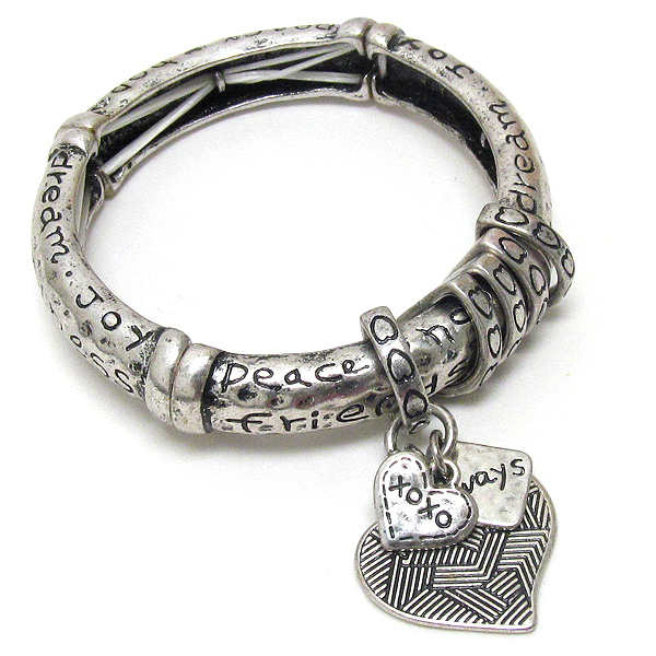 Inspiration message and heart charm patina stretch bracelet