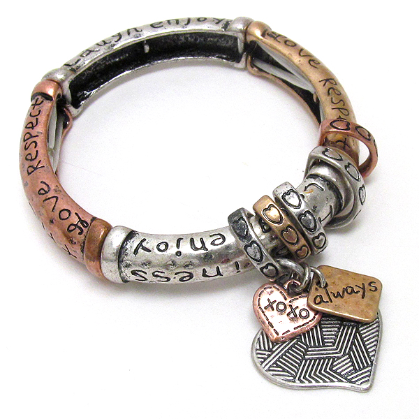 WHOLESALE INSPIRATION MESSAGE AND HEART CHARM PATINA STRETCH BRACELET 395911