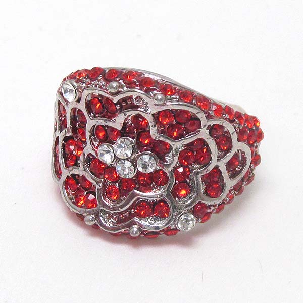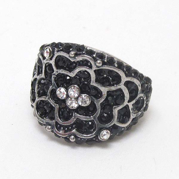 WHOLESALE CRYSTAL STUD FLOWER TEXTURE STRETCH RING 395975