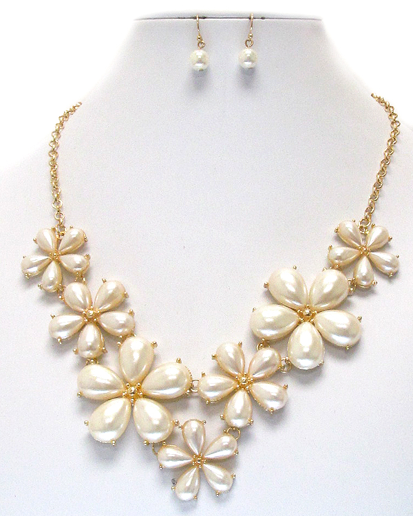 WHOLESALE MULTI PEARL DECO FLOWER LINK CHAIN NECKLACE EARRING SET 396149