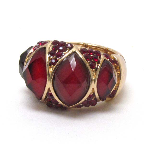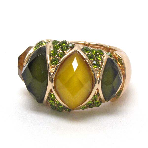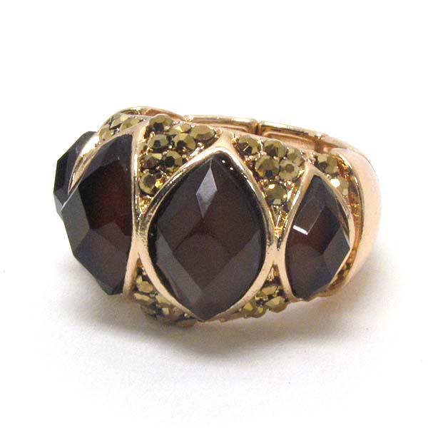 Crystal and facet stone mix stretch ring