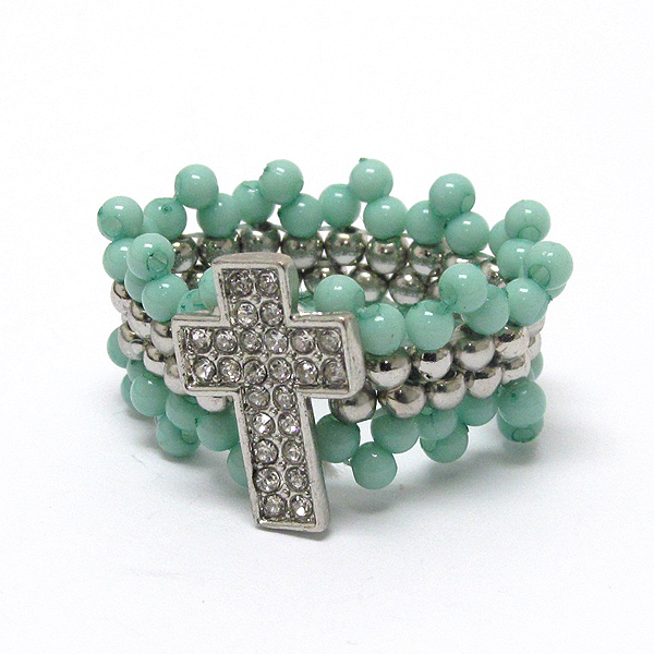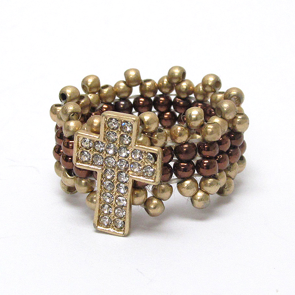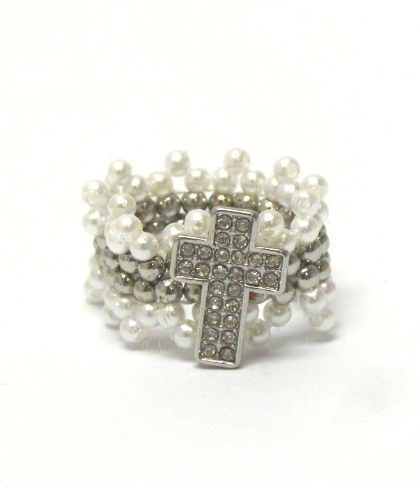 WHOLESALE CRYSTAL CROSS AND PEARL BAND STRETCH RING 396195