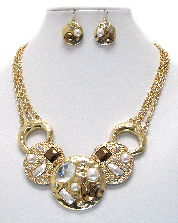 WHOLESALE HAMMERED NATURAL SHAPE DISK LINK NECKLACE EARRING SET 396218