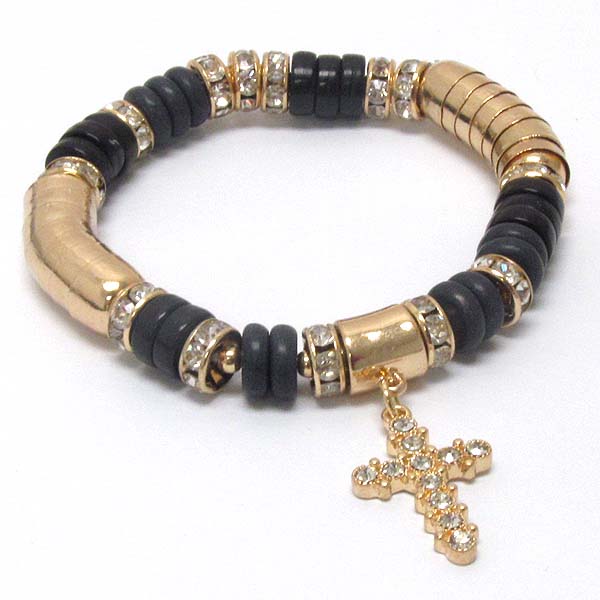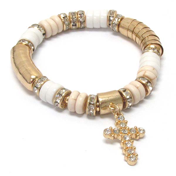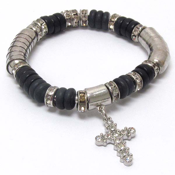 Crystal cross charm and rondelle deco stretch bracelet