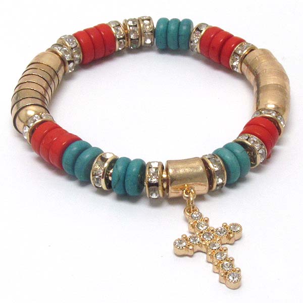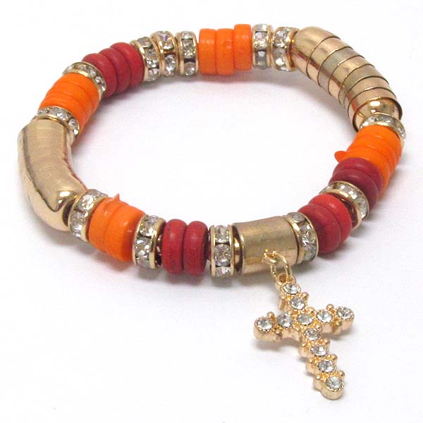 WHOLESALE CRYSTAL CROSS CHARM AND RONDELLE DECO STRETCH BRACELET 396287