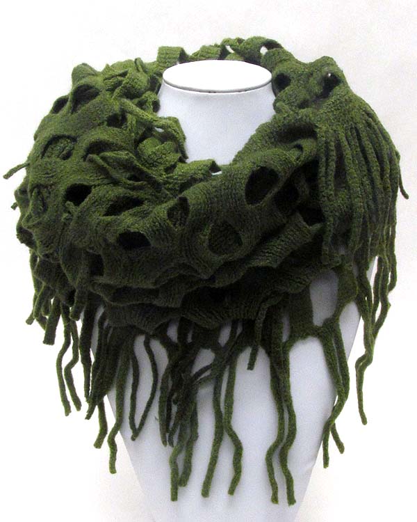 Net and fringe mix infinity scarf
