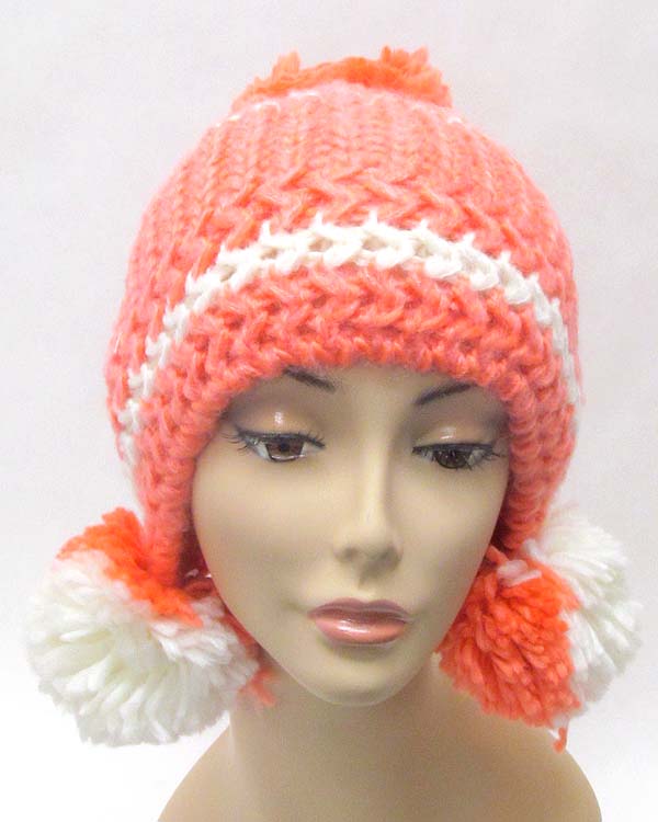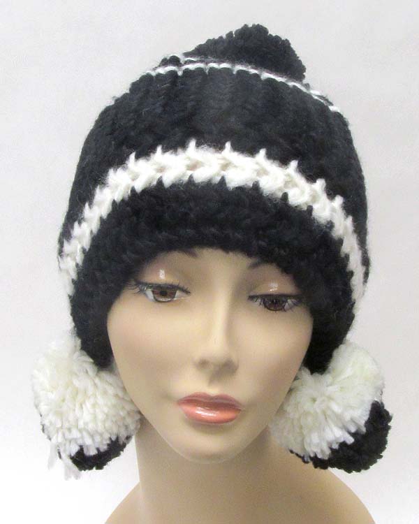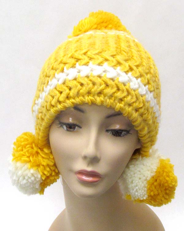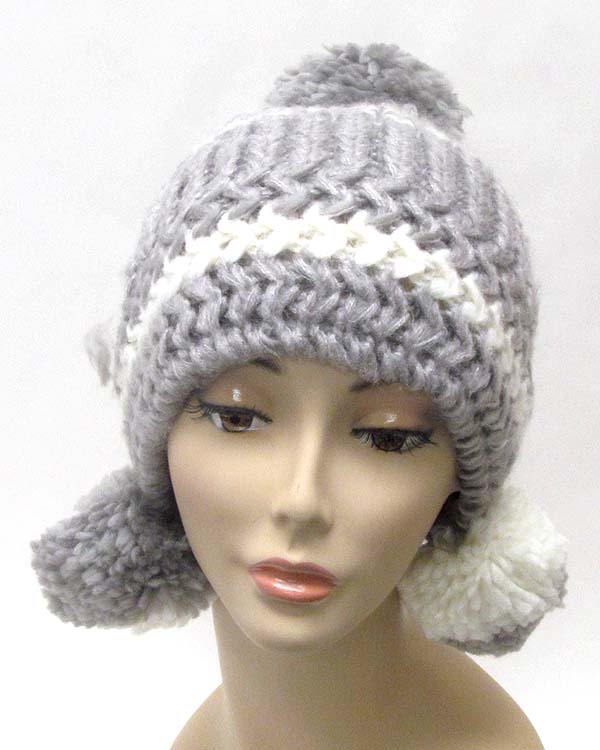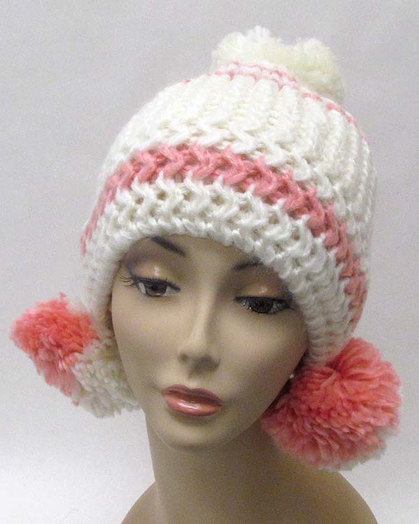 WHOLESALE 3 FLUFFY BALL ACCENT KNIT WINTER HAT 396513