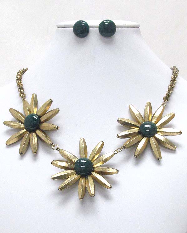 WHOLESALE TRIPLE METAL FLOWER LINK NECKLACE EARRING SET 396765