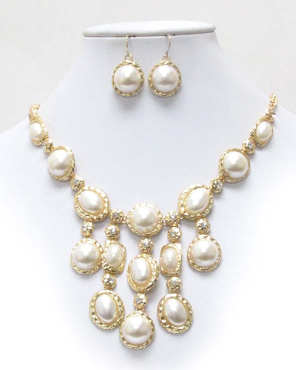 WHOLESALE MULTI PEARL DECO DROP BIB STYLE NECKLACE EARRING SET 397025