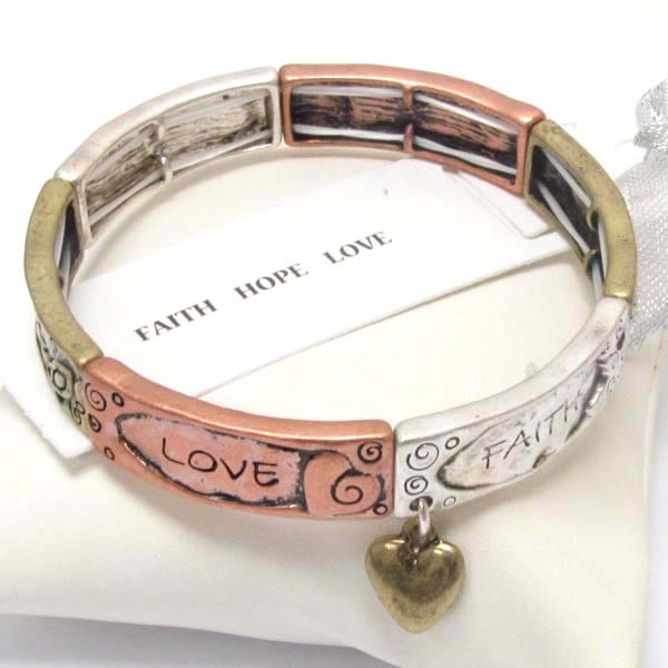 WHOLESALE RELIGIOUS INSPIRATION MESSAGE DOUBLE STRETCH BRACELET - FAITH HOPE LOVE 397155