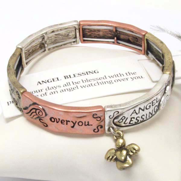WHOLESALE RELIGIOUS INSPIRATION MESSAGE DOUBLE STRETCH BRACELET - ANGEL BLESSING 397157
