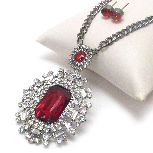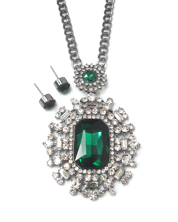 Facet glass and crystal deco pendant long necklace earring set