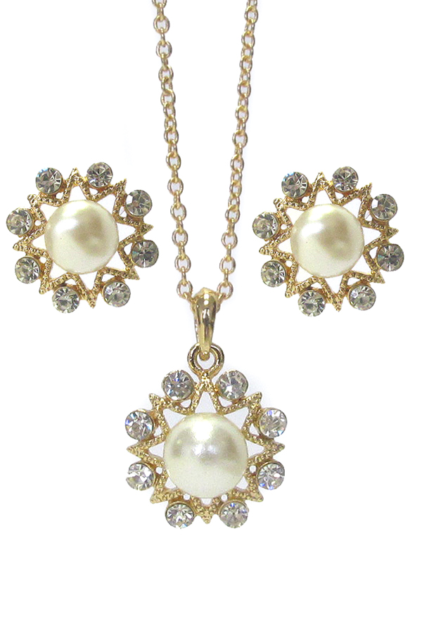 WHOLESALE CRYSTAL AND CENTER PEARL DECO PENDANT NECKLACE EARRING SET 397594