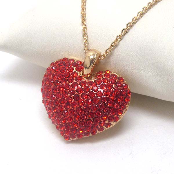 WHOLESALE PREMIER ELECTRO PLATING CRSYTAL STUD PUFFY HEART PENDANT NECKLACE -VALENTINE 397643