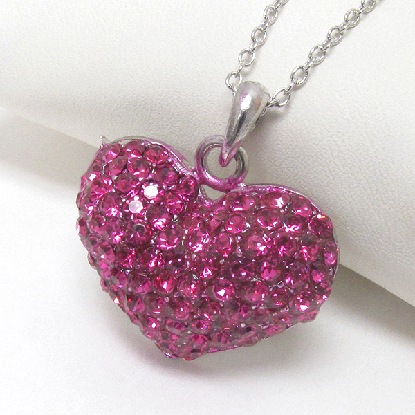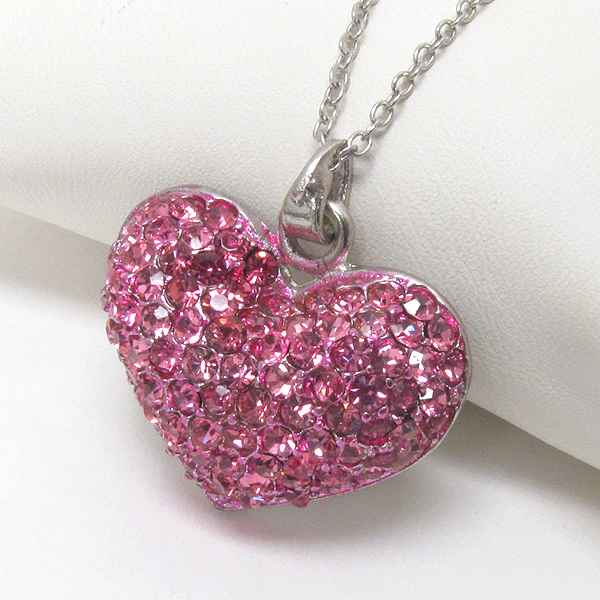 WHOLESALE PREMIER ELECTRO PLATING CRYSTAL PUFFY HEART PENDANT NECKLACE -VALENTINE 397653