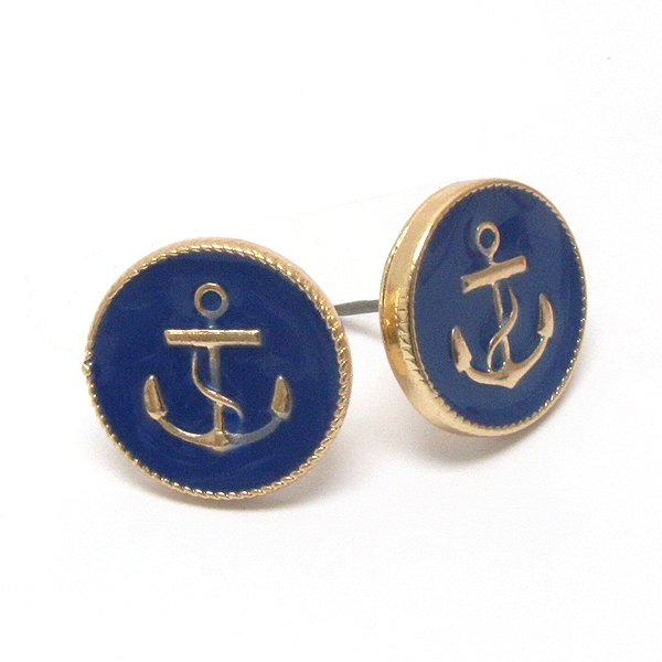 WHOLESALE PREMIER ELECTRO PLATING EPOXY DECO ANCHOR BUTTON EARRING 397788