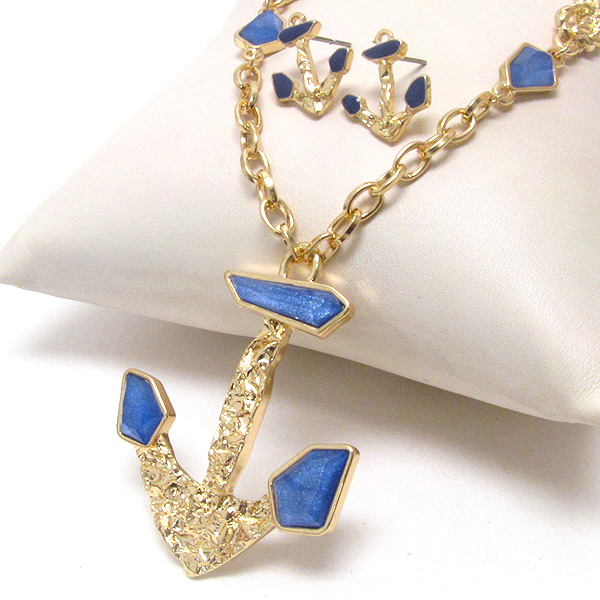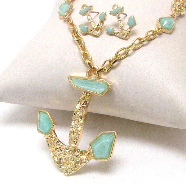 WHOLESALE FACET ACRYLIC AND METAL FLAKE TEXURED ANCHOR NECKLACE EARRING SET 397936