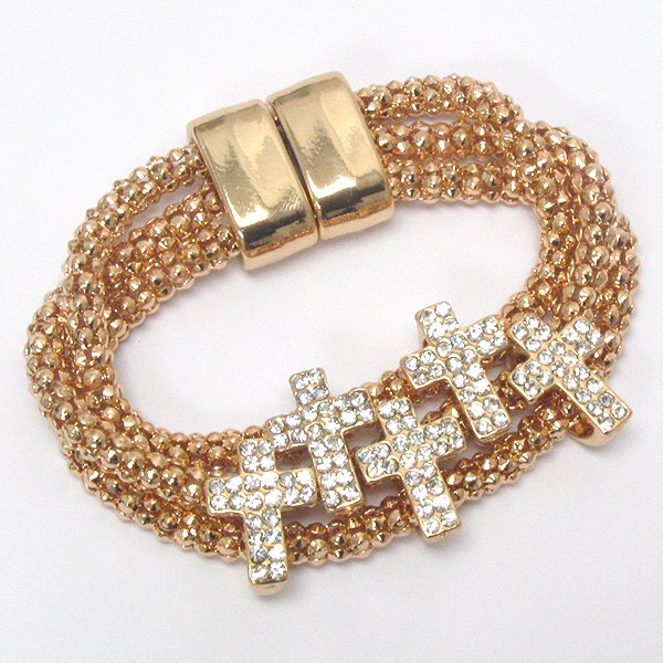 Crystal deco multi cross on trip tube chain and magnet close bracelet