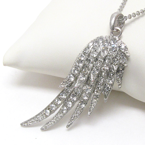 Premier electro plating crystal deco angel wing pendant necklace