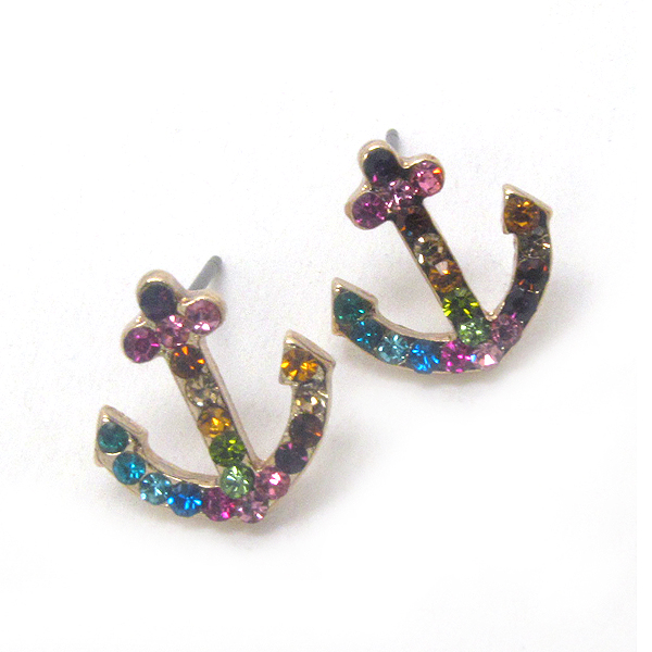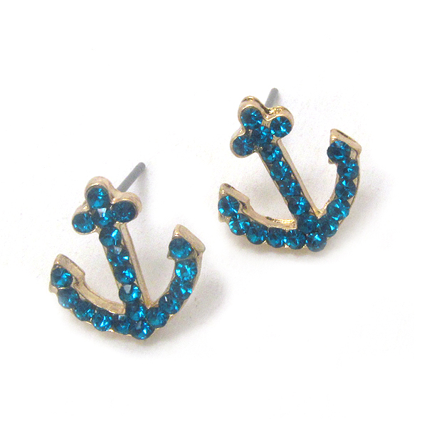 Premier electro plating crystal deco anchor stud earring
